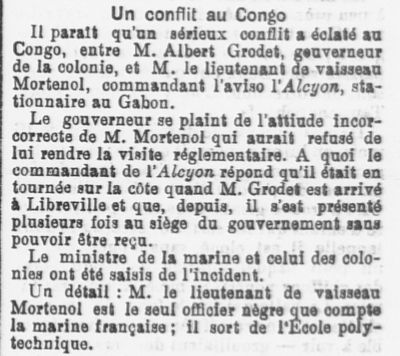 - Enfin,j’ai cette perle – il faut bien que j’apporte quelque chose en sus de résumer Wikipedia. Tout est là. Je me suis dit que c’éait 50/50, le sieur Grodet ayant probablement cherché des noises à un officier « nègre » par pur racisme, et ce dernier, ayant dû « jouer au con », refusant de se laisser marcher sur les pieds par un simple gouverneur de colonie, non-X de surcroît :). Je suis donc allé regarder qui était cet Albert Grodet, vous pensez. Je ne suis pas allé chercher loi, je me suis contenté de mon ami de toujours, nettement plus fiable que ChatGPT, Wikipedia. Et je n’ai pas été déçu :