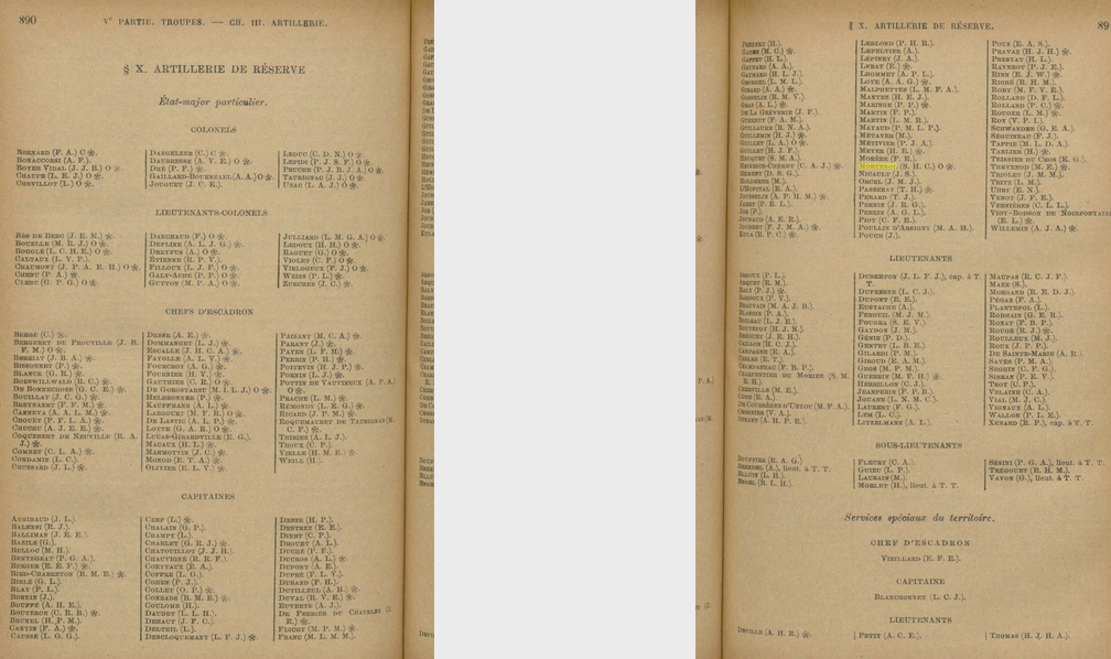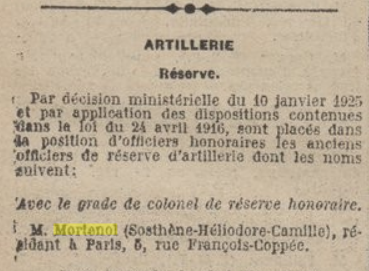 Alors capitaine ou colonel ? C’est là que l’uniformologue (reconnaissez que vous l’attendiez) surgit : capitaine, certainement. Mais comme il aura conservé son uniforme de capitaine de vaisseau – je confirme, il n’existe pas de photo de Mortenol en artilleur – pour tous, il était colonel. Au point que même la grande chancellerie de la LH s’y trompe…