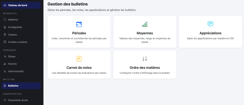 Pour le troisième projet, je suis passé à quelque chose de beaucoup plus ambitieux : un logiciel de gestion d’établissement scolaire, avec plusieurs classes, plusieurs enseignements, plusieurs professeurs bien entendu, la gestion des élèves, des bulletins, des périodes scolaires, etc. Je ne suis pas encore arrivé au bout du produit, mais au terme de deux heures de travail, je dispose d’un outil assez remarquable, écrit en PHP/MySQL – donc parfaitement standard – qui me permet déjà de créer différents types de comptes utilisateurs dotés de rôles différents, d’importer des fichiers CSV d’élèves avec parents responsables, d’attribuer des notes, de produire des carnets de notes, des moyennes et des bulletins, bref un outil hyper pratique pour tout responsable d’établissement, et qui remplacerait sans aucun problème l‘outil open source mais non maintenu, utilisé dans un établissement que j’assiste sur ses outils informatiques.